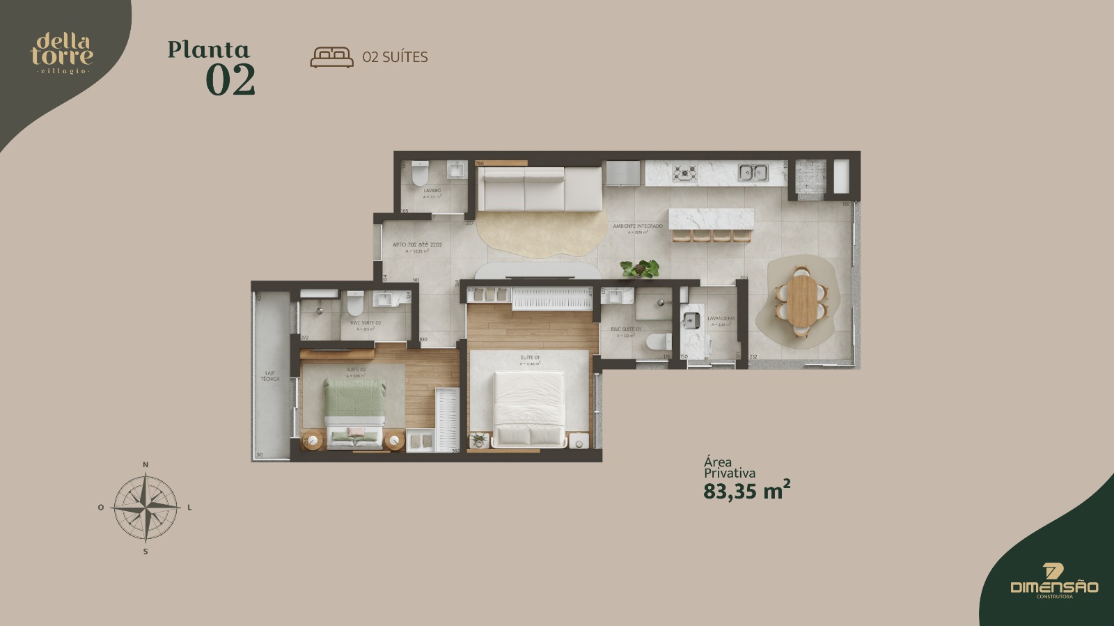 • Área privativa: 83,35 m²