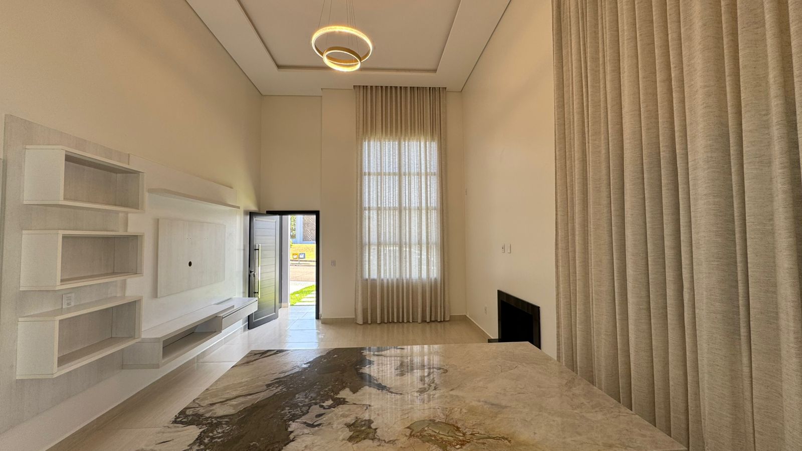 ✨ Cortinas em linho, porcelanato, lustres e acabamentos de primeira linha