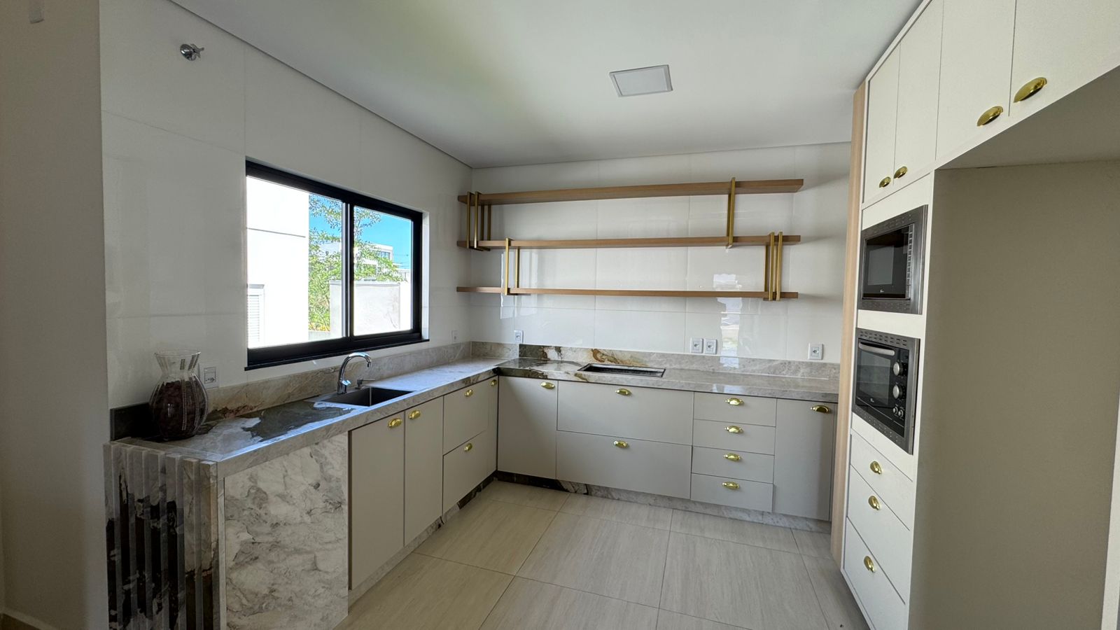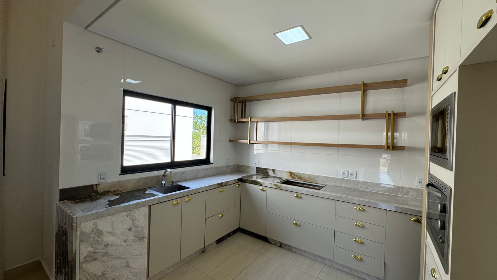 🍽 Cozinha planejada com pia sob medida, mesa em mármore e acabamentos refinados